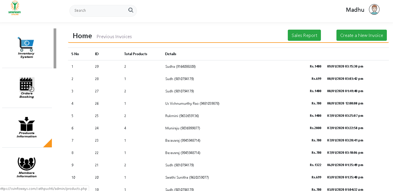 SATHPUSHTI LIFELINE WEB APPLICATION, This is the health life line product web application. This is build for managing product sales