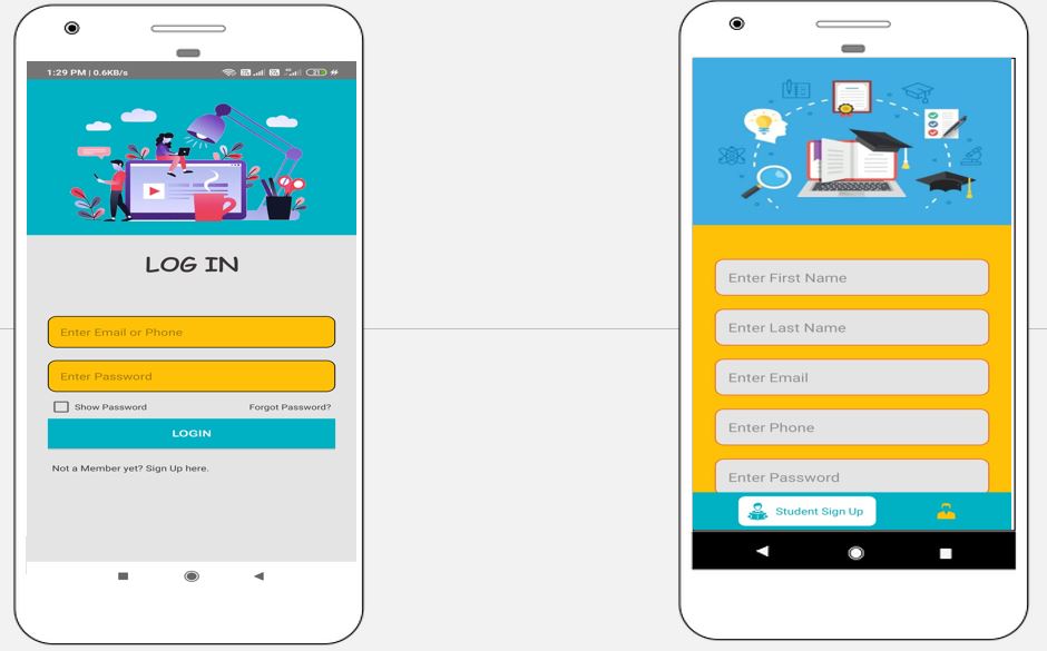 Effortless registration and Authentication: Allows learners to set their profile and complete registration by entering a name, gender, email address, DOB, phone number, and city details.