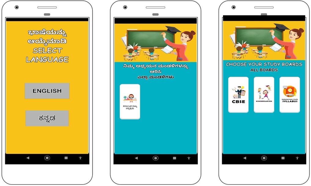 You can choose either of the 2 languages i.e. Kannada or English to present the contents